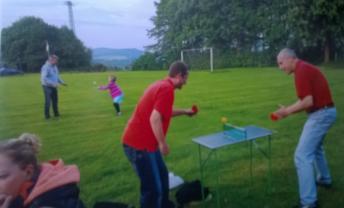 TT-Freaks beim RWA-Grillen im Sommer 2016 - hier Hoika u. Friebe beim Mini-TT |